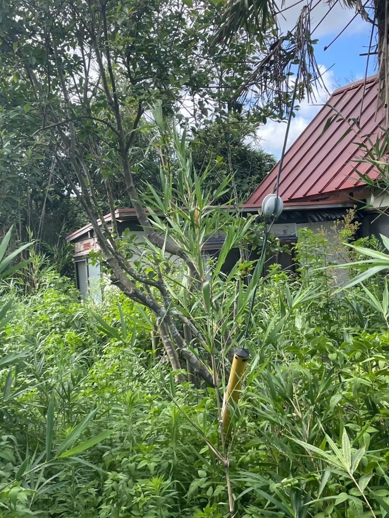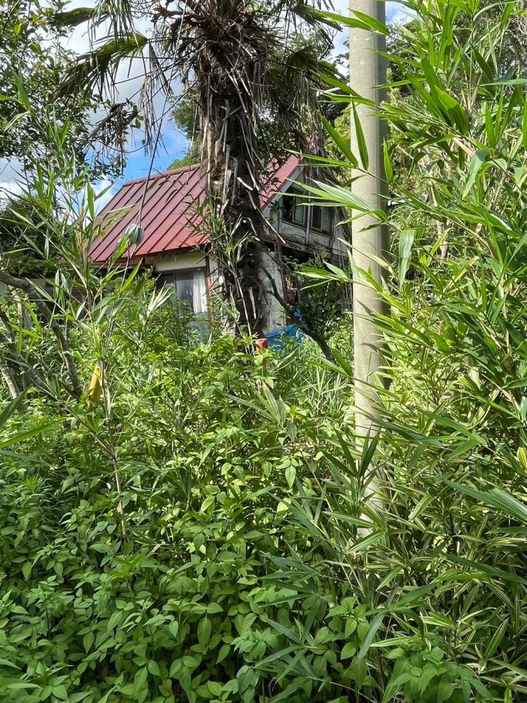 現地を確認すると、庭木が大きく成長し、枝や葉が隣地へ越境している状態でした。このようなケースでは、事前の剪定や越境解消、場合によっては隣地との調整が必要となり、売却のハードルが高くなることが一般的です。