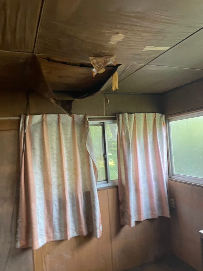 実際に現地調査を行ったところ、屋根からの雨漏りによる天井のシミや腐食、さらに設備の老朽化も見受けられ、一般的な市場では敬遠されやすい物件でした。そのため、他社では「解体前提」や「かなり低い査定額」を提示されていたとのことです。